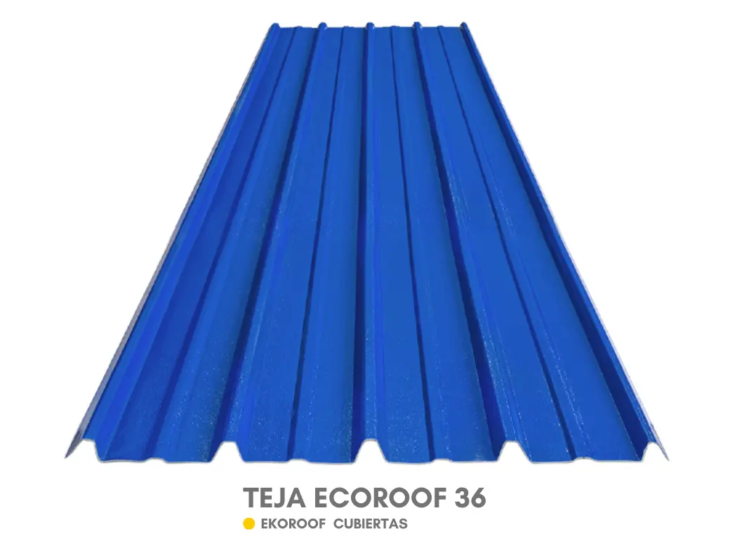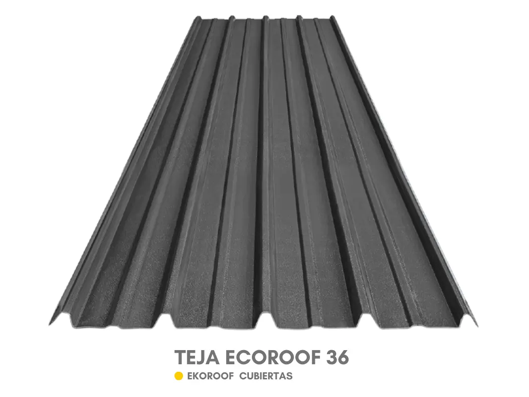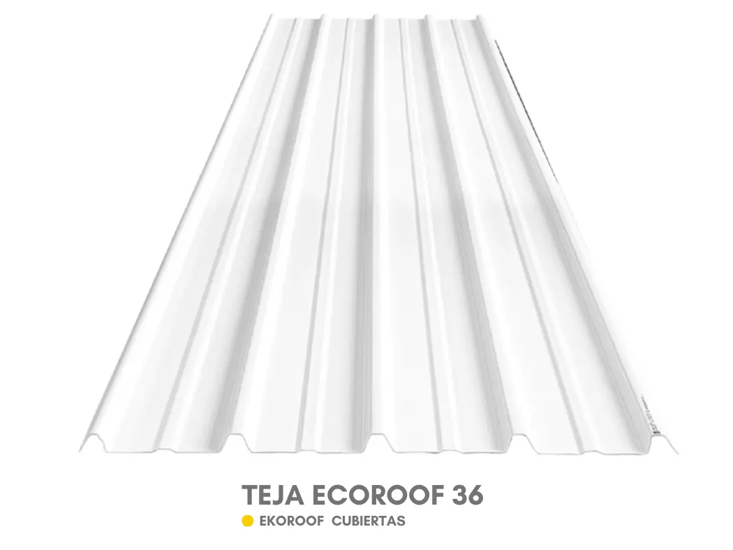 Gracias a su diseño innovador y composición en UPVC y alma en PVC espumado, las tejas ECOROOF® 36 cuentan con alta resistencia al impacto y baja transmisión de calor, ruido y un mejor precio del m2 frente a sus competidores.