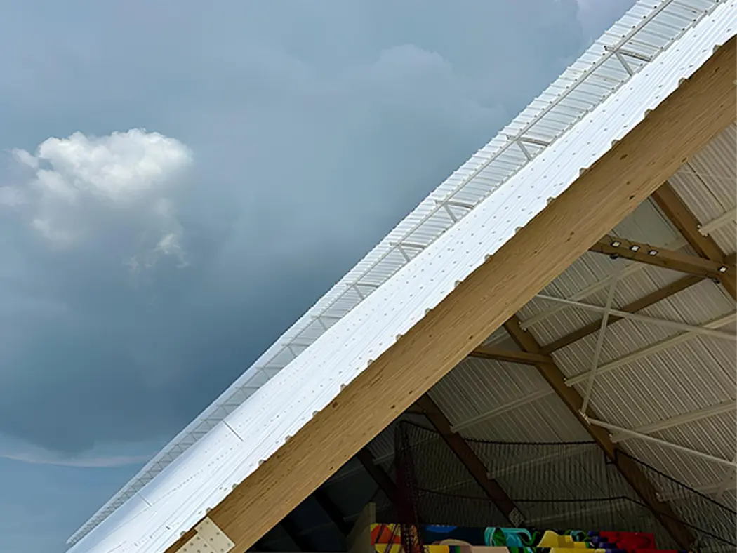 Perfil desarrollado por Arkos, óptimo para cubiertas industriales, con un ancho útil de 1.20, metros con una altura de cresta de 51 mm, que permite mayor distanciamiento entre apoyos o correas superiores a 1.70 m, superando a cualquier referencia de teja UPVC en el mercado.