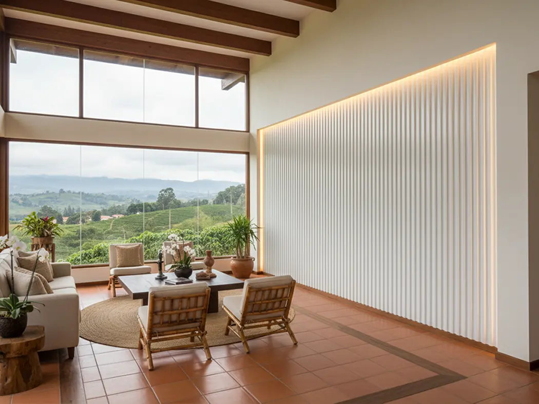 La lámina corrugada en UPVC más económica de la línea Ecoroof; ideal para revestimientos, muros divisorios y cielo rasos, su geometría permite usarla en superficies curvas. Ideal para aplicaciones en interiores se puede aplicar tanto en vertical como en horizontal y en exteriores e interiores.