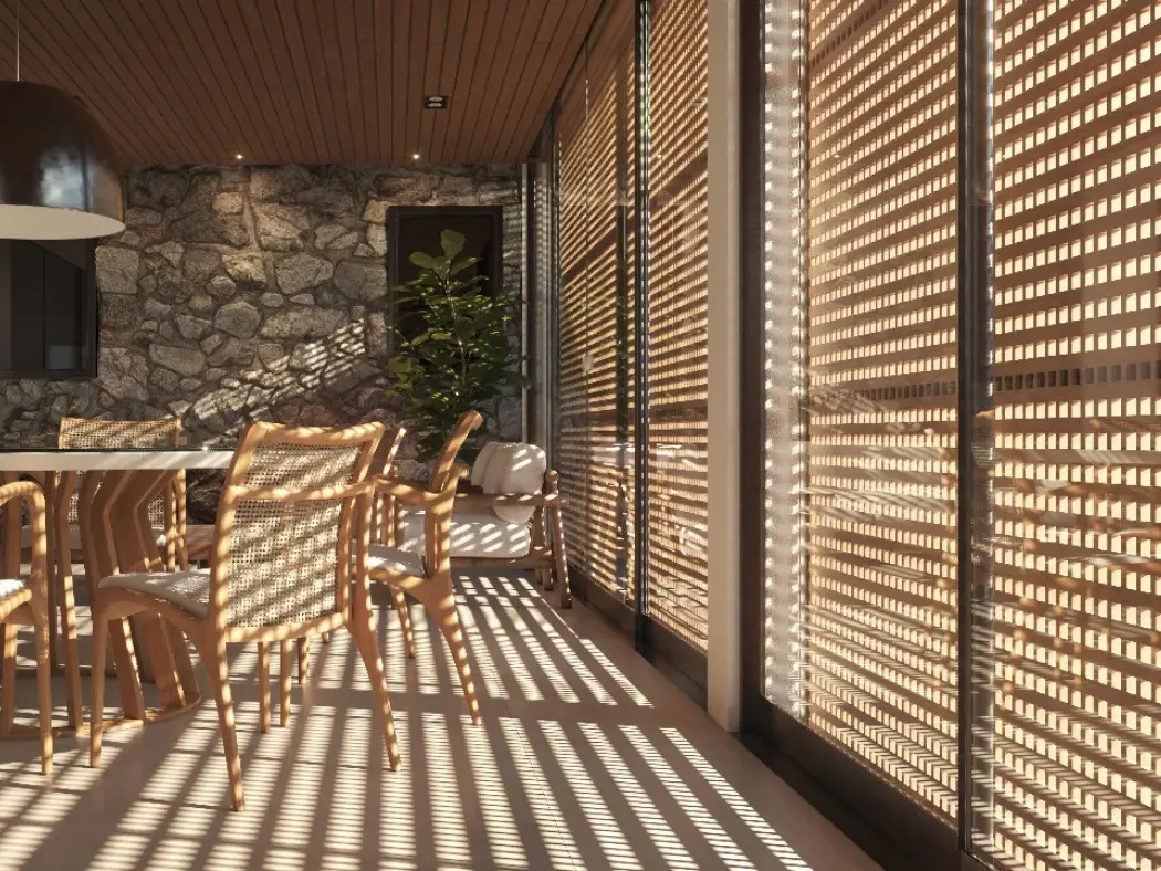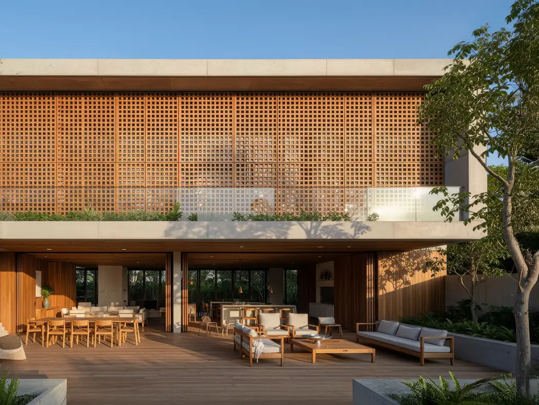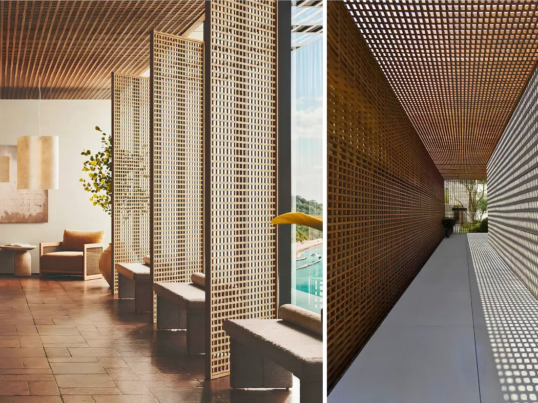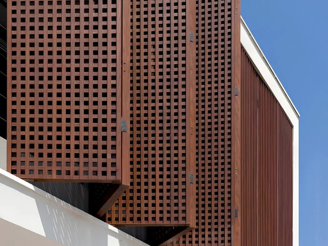 Desarrollado para fachadas que respiran, muros que filtran la luz con suavidad y divisiones que garantizan privacidad sin romper la conexión visual, redefine la interacción entre luz, sombra y forma, creando atmósferas vivas y dinámicas.