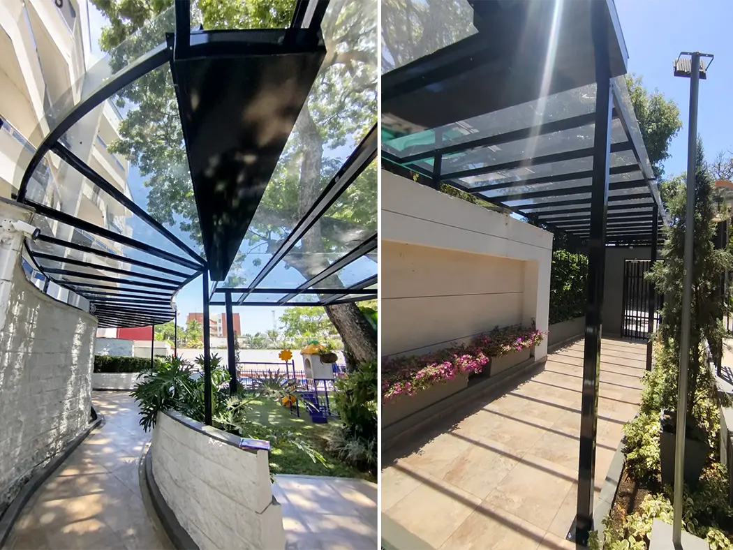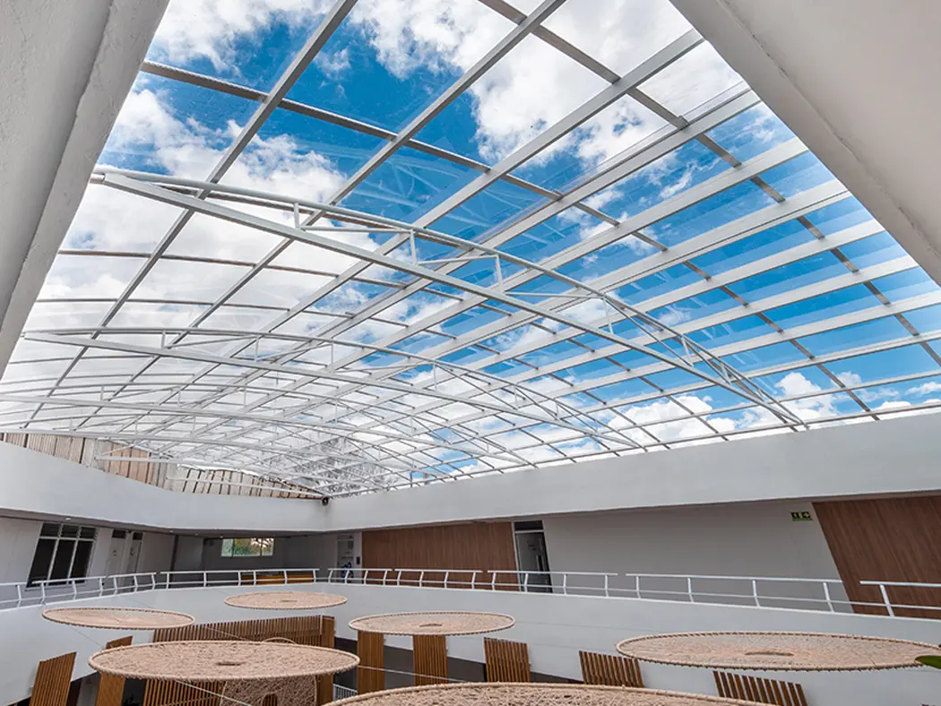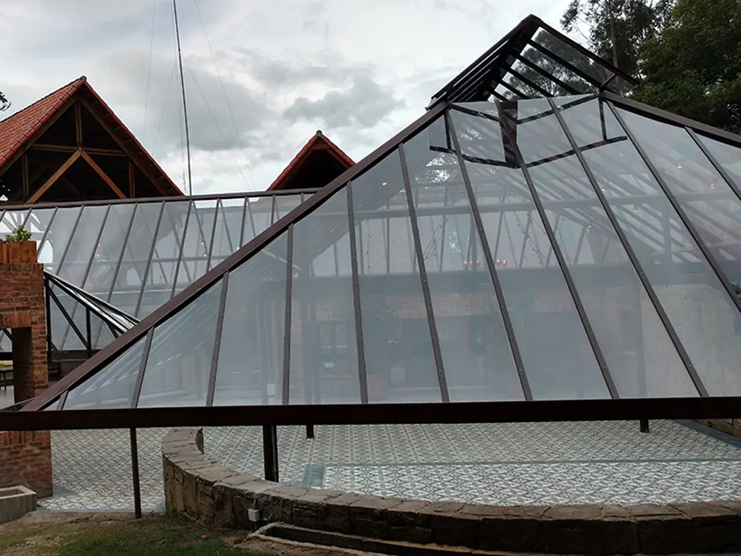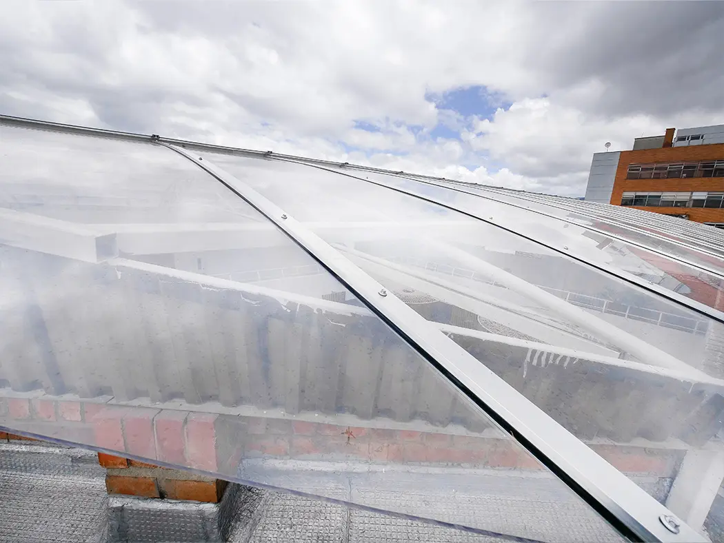Solid polycarbonate is a reliable and durable choice for architectural and construction applications. Made from a single solid layer of high-quality polycarbonate, it stands out for its impact resistance, shock resistance, low weight, and UV control, making it ideal for adverse weather conditions. Furthermore, its high transparency allows optimal entry of natural light, creating bright environments and reducing the need for artificial lighting, thus promoting energy efficiency and cost savings.