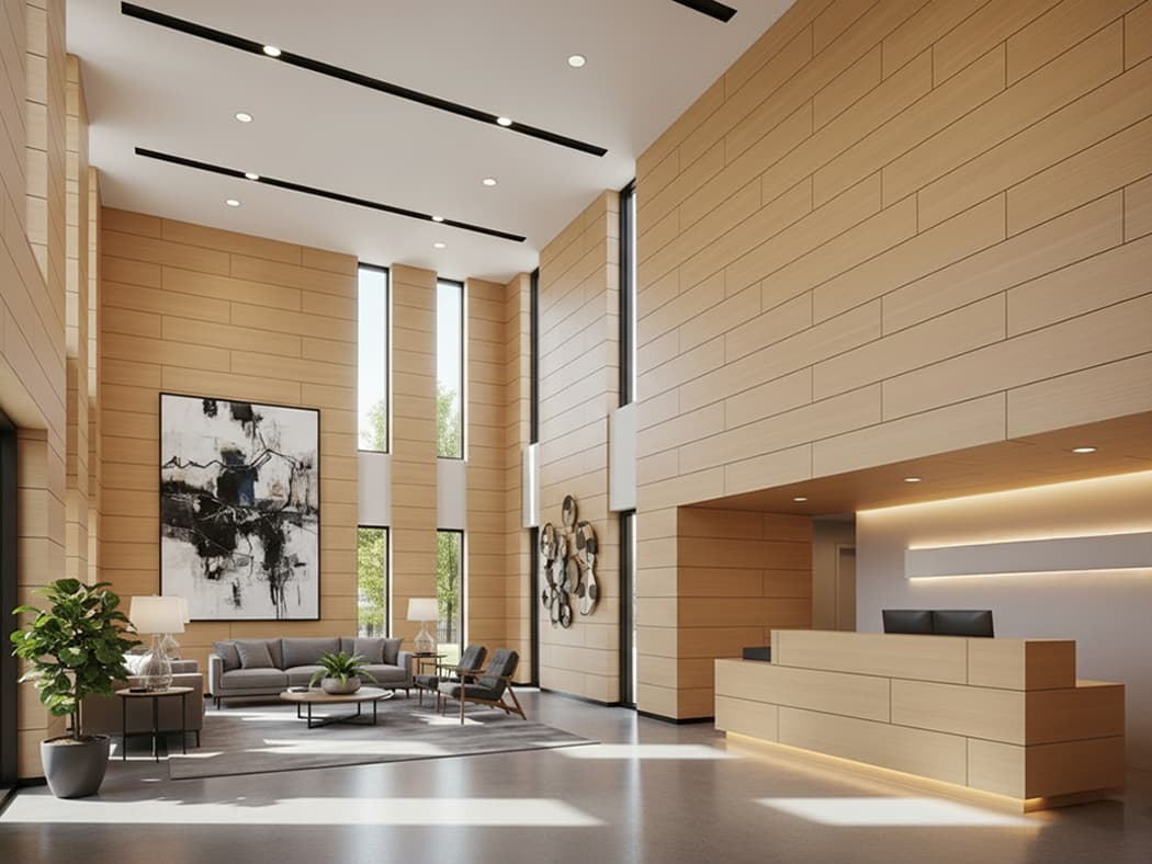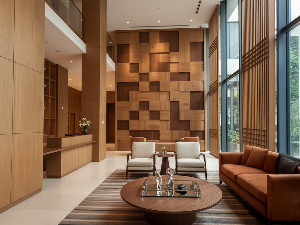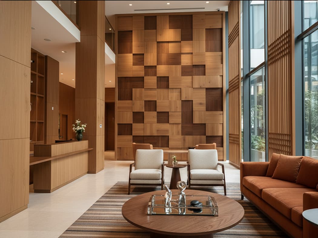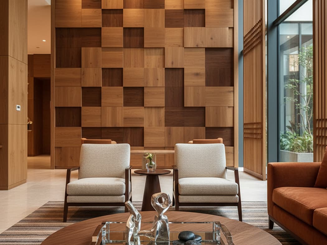 Placas decorativas que revisten espacios con madera ecológica y un toque moderno, combinando sostenibilidad y estilo, diseñado para revestimiento de paredes interiores. Combina la estética natural de la madera con la resistencia y durabilidad del (WPC, PVC, PE ). Resistente al agua, humedad, insectos y cambios climáticos.