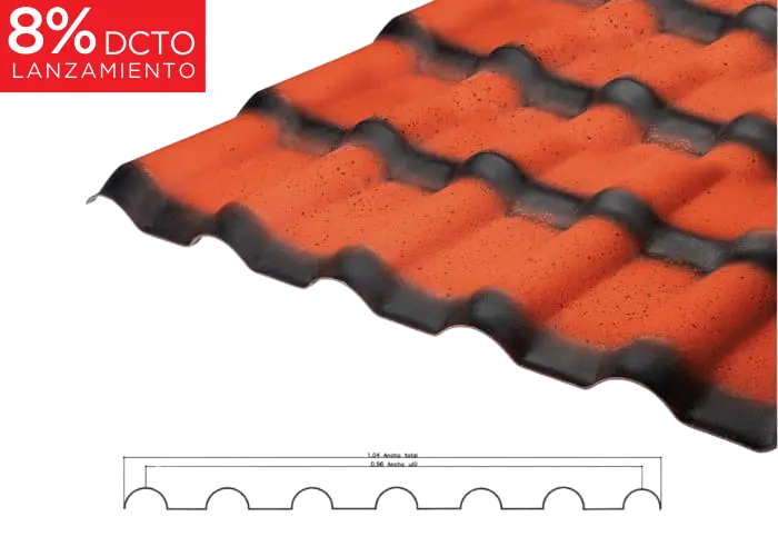 CABALLETE TEJA ECOROOF ESPAÑOLA 40 ASA-UPVC 2.3MM TERRACOTA MATT 1.04M X 0.887M