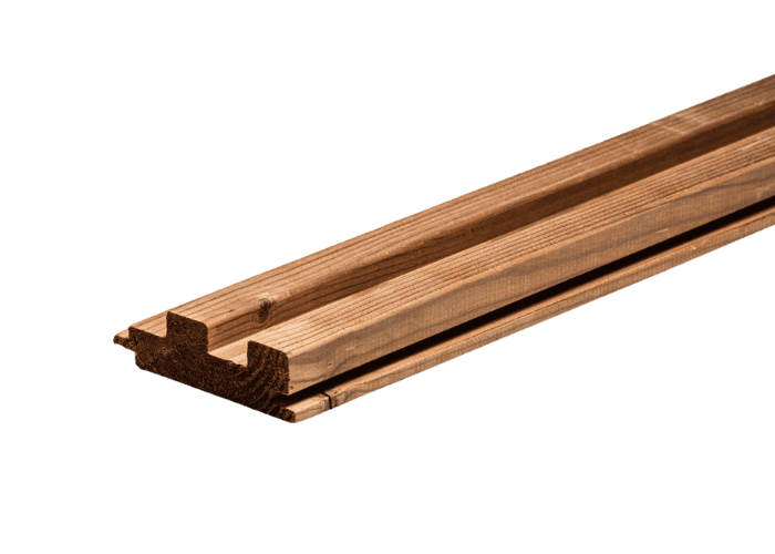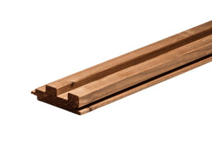 Wallpanel T Ext 88-26, revestimiento de madera natural (pino finlandés) Thermowood, un material sostenible y altamente resistente, ideal para aplicaciones tanto en interiores como en exteriores. Su tratamiento térmico mejora la estabilidad dimensional, la durabilidad y la resistencia a la intemperie, sin necesidad de pinturas ni pegantes adicionales.
