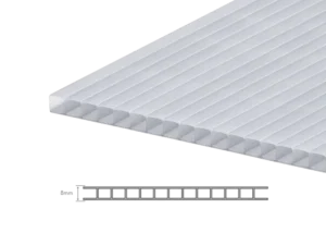 Láminas de policarbonato con la más alta resistencia al impacto y protección UV, que combinan una alta transparencia de bajo peso, calibre 8mm.