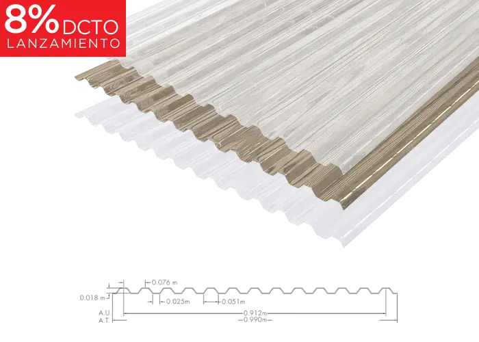 TEJA ONDULA P3 PC 0.5MM CRISTAL 0.812M X 1.22M SIN FILM